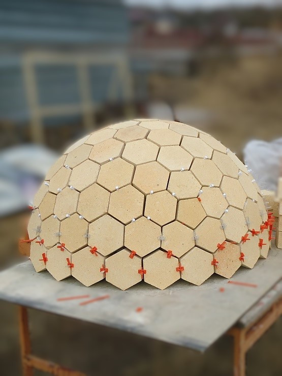 Внутренняя часть печи: элементы в форме сот для сборки свода, элементы пода из шамота, основание свода, утепленная заслонка